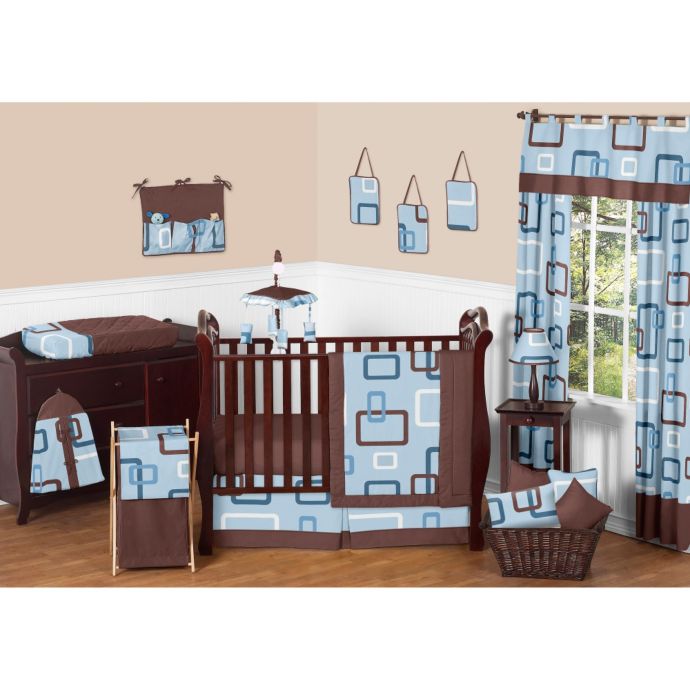 Modern soho blue and brown baby boy bedding 9pc bedding crib set by sweet jojo designs. Blue and brown baby bedding for girls picking blue and brown for your daughter's nursery may not have been your first instinct, but this color combo baby blue and brown bedding can look incredibly sweet for a girl's room if you dress it up properly. You might also like this photos or back to what should be in the baby boy crib bedding sets? The set is made by geenny designs, well known as nursery series products designs. Typically a crib bedding collection consists of a quilt, a fitted crib sheet, a crib skirt and a diaper stacker;